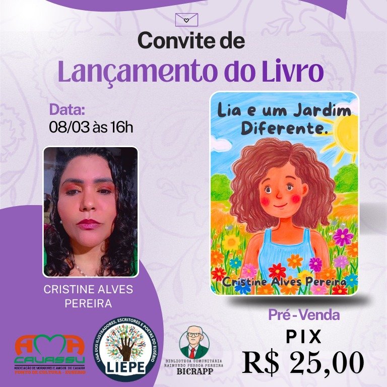 É com muita alegria que convidamos você para o lançamento do livro “Lia e um Jardim Diferente”, uma obra sensível que fala sobre diversidade, cuidado, afeto e respeito às diferenças desde a infância.